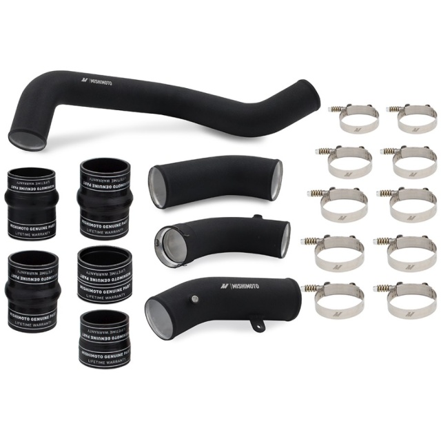 • Includes Mishimoto silicone boots with DuraCore™ technology and Mishimoto constant-tension T-bolt clamps