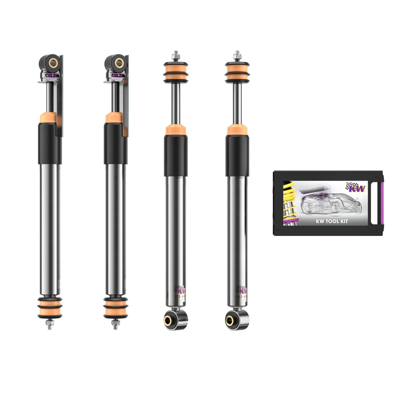 If your original suspension is too hard for your everyday life or even the comfort of your installed aftermarket suspension kit KW Street Comfort sport suspension is the perfect solution for more driving comfort. It combines a minimal lowering within the vehicle-specific adjustment range of ten to 40 mm with a comfort-oriented damper setup developed from KW test engineers in numerous test runs in everyday life and on our KW 7-post rig
