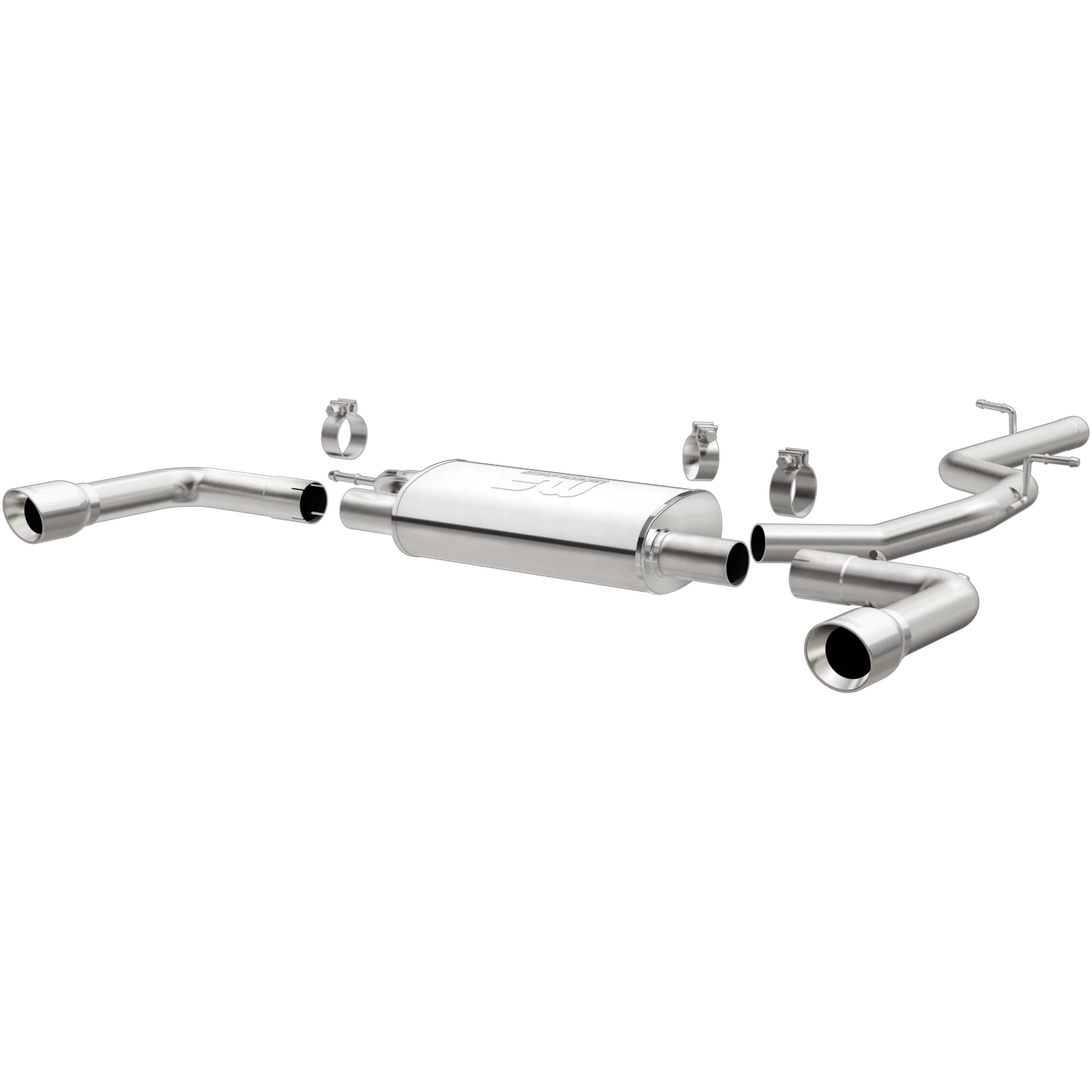The MagnaFlow 2015-2020 Audi A3 Quattro Touring Series Cat-Back Performance Exhaust System is the perfect partner for your 2.0L 2015-2020 Audi A3 Quattro to take on a grand tour or a weekend cruise thanks to the powerful, resonant exhaust note and dyno-proven performance it brings to the table. This durable, corrosion resistant stainless steel exhaust kit is engineered to conquer the miles with ease while enhancing your driving experience with Moderate exterior and Mild interior sound levels generated through its fast-flowing, mandrel bent 2.5in. main piping and 1 Straight-Through muffler that terminate in a Dual Split Rear exit with 3.5in. Polished Welded-On Double Wall Angle Cut Folded Edge tips. 15352 features a cat-back layout design to replace your import's stock exhaust components from the catalytic converter on back. This Audi A3 Quattro exhaust system is compatible with 2015-2020 engines. The use of extensive 3D scans made during the development process has resulted in an easy-to-install, direct-fit design that fits your Audi A3 Quattro like a glove. 15352 is produced using CNC precision robotic manufacturing techniques and is backed by MagnaFlow's limited lifetime construction warranty. Product video