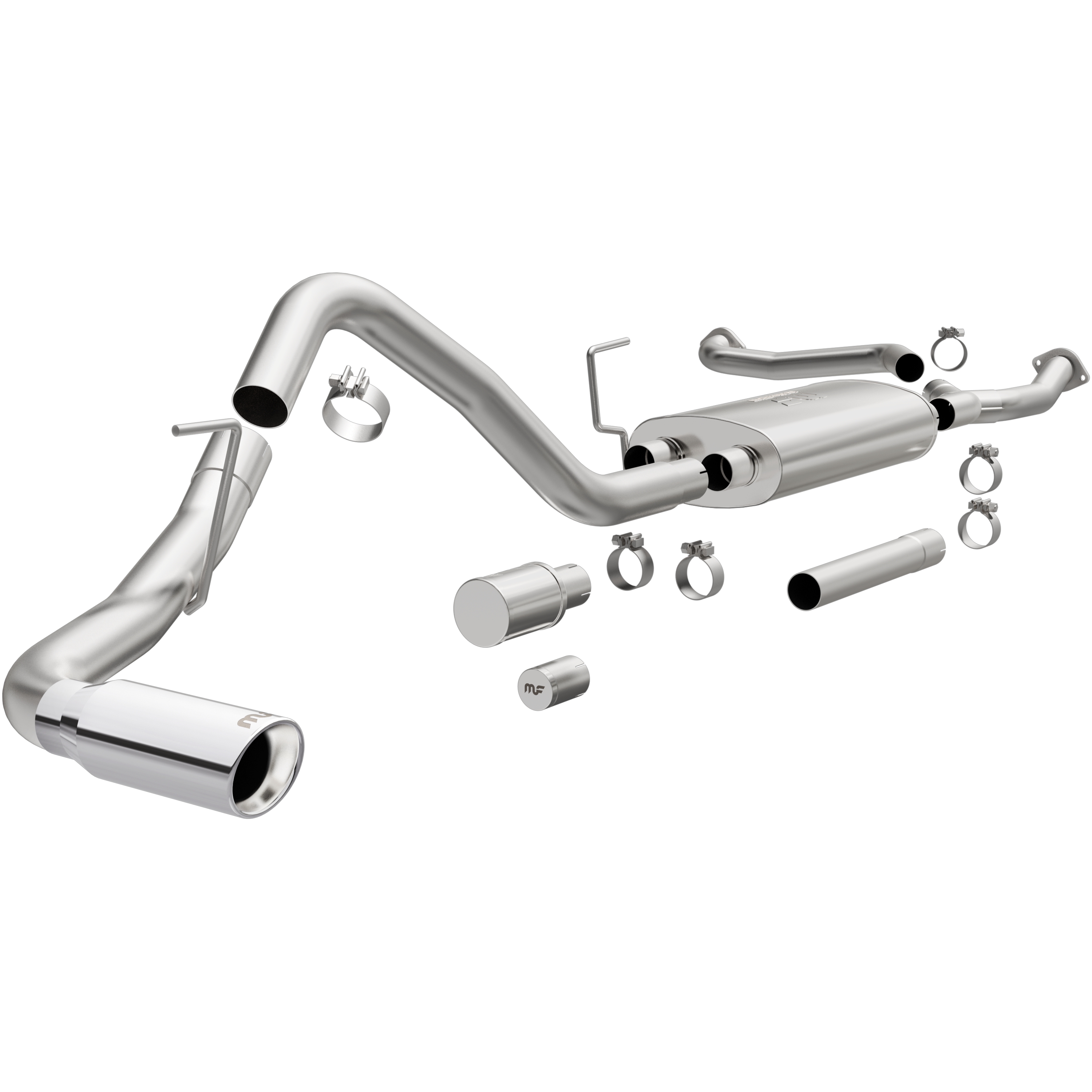 With the MagnaFlow Nissan Frontier Street Series Cat-Back Performance Exhaust System #19574 everyone else will know who rules the road once they hear that deep, resonant exhaust note that MagnaFlow is famous for. Exhaust kit #19574 features 3” main piping that passes through a straight-through muffler before terminating in a 4” single side exit with polished tip. An integrated NDT (No Drone Technology) resonator and versatile tuning of the piping and straight-through muffler ensure that this exhaust system nullifies the unwanted droning noises that can otherwise occur at freeway speeds while maintaining moderate exterior and mild interior sound levels. The exhaust system is designed to enhance your 2022-2025 Nissan Frontier Crew Cab or King Cab with dyno-proven performance gains and tuned to produce mild interior and moderate exterior sound levels. This Nissan Frontier exhaust system is produced using CNC precision robotic manufacturing techniques and durable, corrosion resistant stainless steel. #19574 is backed by MagnaFlow’s limited lifetime warranty. Product video