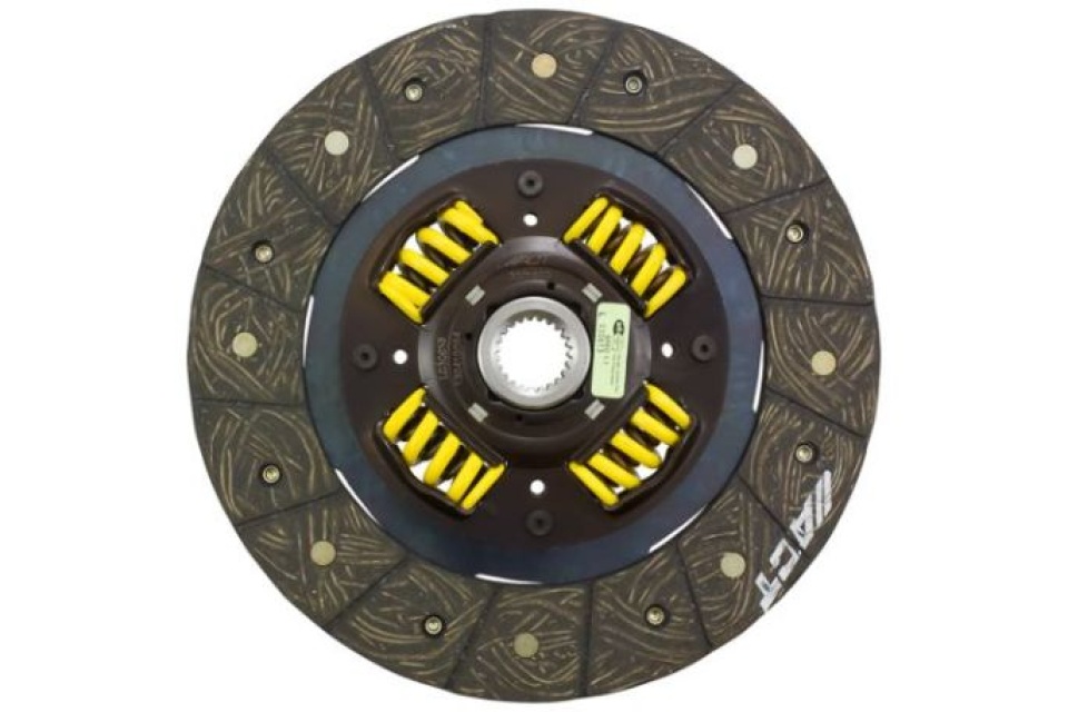 3001603 is a performance street disc and the most popular disc purchased, It features premium organic materials with high copper content for better heat transfer, Performance street discs allow for quicker shifting and smooth engagement, These discs feature a reduced marcel for faster shift action to complement ACT pressure plates, ACT spring-centered assemblies use bushings and cone springs similar to factory clutch discs, This creates frictional dampening, which improves clutch life and reduces noise, Quiet operation with increased strength and reliability,