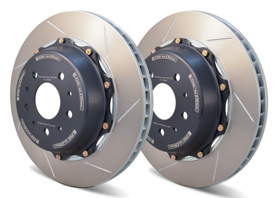 The main reason for choosing Girodisc's 2-piece brake discs is to lower the unsprung and total weight of your car. The secondary reason is to get a disc with better cooling and ventilation while maintaining the original size. This has been achieved by making a 2-piece disc where the center is made of T6061-T6 Aluminum and the friction surface is made of cast steel.