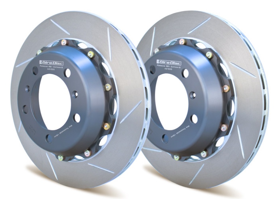 The main reason for choosing Girodisc's 2-piece brake discs is to lower the unsprung and total weight of your car. The secondary reason is to get a disc with better cooling and ventilation while maintaining the original size. This has been achieved by making a 2-piece disc where the center is made of T6061-T6 Aluminum and the friction surface is made of cast steel.
