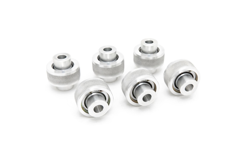 • SPL Parts Camaro/ATS FKS Series Rear Knuckle Monoball Bushings (RKB) replace the stock mushy rubber bushings with low-friction articulating spherical bearings, eliminating bushing flex and reducing bind/friction.  This maintains optimum suspension geometry under load to improve handling and feedback, without a significant increase in NVH. The stock bushings in your Camaro/ATS''s rear knuckle that connect to your Rear Upper Camber Arm, Rear Lower Traction Arm, and Rear Upper Traction arm are all injected rubber metal sleeved bushings. These are perfectly fine for regular driving, but are not ideal for pushing a performance vehicle. Upon the high loads that these see, whether it be a launch or high G cornering loads, the rubber will deflect, allowing for dynamic changes to toe and camber while at the limit. During a launch this will cause a toe change, which will create wheel hop, hurting the effectiveness of the launch and possibly damaging your axles. During high cornering loads, camber and toe changes make the car less predictable and repeatable, making it more difficult to put down consistent lap times. Combine these rear knuckle bushings with our Rear Upper Camber Arm (RUA CAM6), Rear Upper Traction Arm(RUT CAM6), and Rear Lower Tractions Arms (RTR CAM6) to remove all deflection from your rear suspension and allow for all the adjustment you would ever need. Our Monoball Bushings feature FK Racing Bearings with a self lubricating Teflon liner for long life and maximum performance.  Highly precise (machined to 1/1000th inch) CNC machined T6061 Aluminum bearing shells provide an accurate fit. Sold as complete kit for one car.Made in the USA. Applications: 2016+ Camaro (All Models) 2013-2019 Cadillac ATS/ATS-V