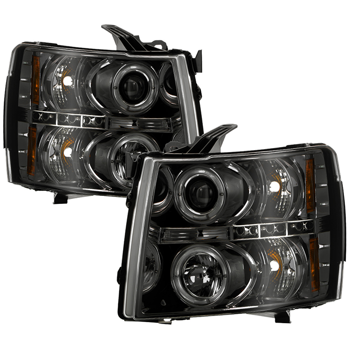 Chevy Silverado 1500/2500/3500 07-13 Projector Headlights - LED Halo - LED ( Replaceable LEDs ) - Smoke Spyder Auto
