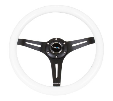 Classic Wood Grain Wheel350mm 3 Black spokesWhite Paint Grip NRG