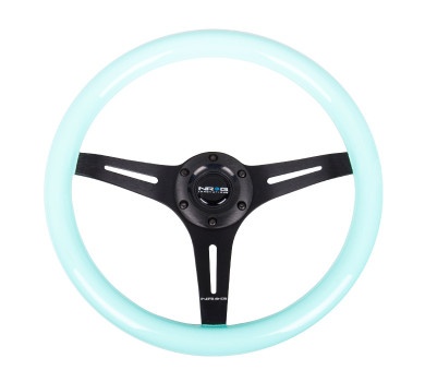 Minty Fresh Wood Grain Wheel 350mm 3 spoke center in Black NRG