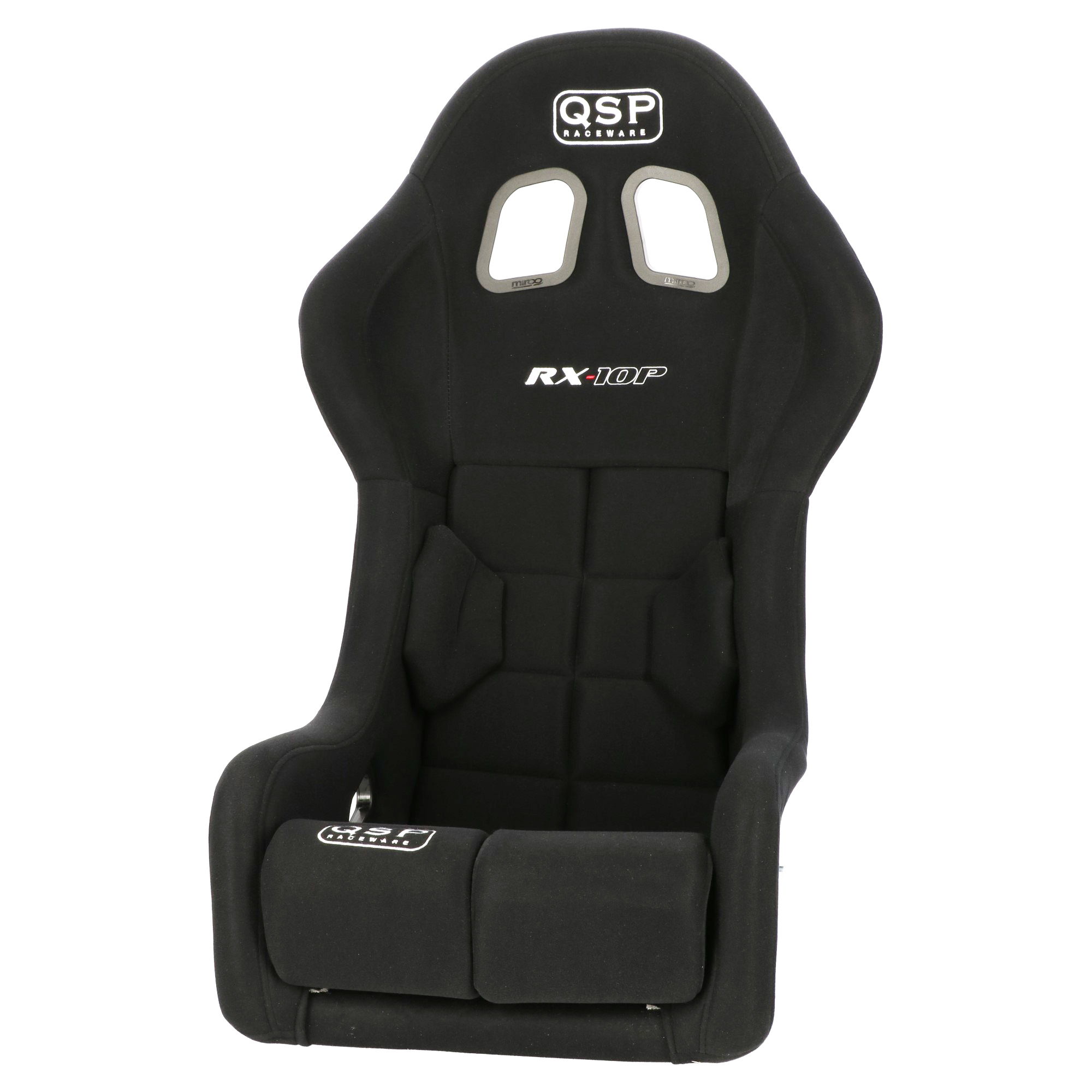QSP racing chair FIA RX-10P (XL) QSP FIA approved racing chair, with polyester shell with a beautiful glossy gel coating, covered with velor fabric. The extra supportive back cushions are included. The seat has 5 belt holes, suitable for 4-, 5- and 6-point belts. This sports chair is equipped with side mounting, suitable for all chair frames from QSP Products. Chair frames must be ordered optionally. Weight: 8.4KG. HANS® compatible. Product video