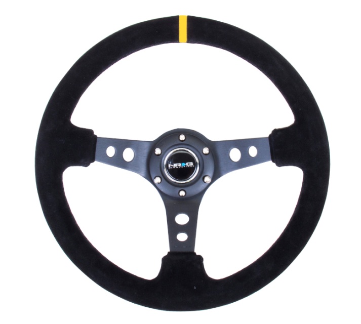 350mm Sport Steering Wheel (3 Deep) - Suede Black Stitch w/ Yellow Center Mark