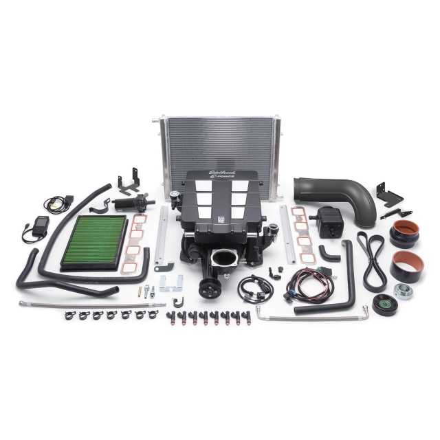 Featuring a unique design with minimal components makes it possible to fit an Edelbrock supercharger under the stock hood. The core of each system is the Eaton Gen VI 2300 TVS rotating assembly with a four-lobe design with 160 degrees of twist for maximum flow, minimum temperature rise and quiet operation for excellent drivability. We also designed our superchargers with an integrated bypass valve to help eliminate parasitic loss under light throttle, improving mileage potential. Our unique and efficient inlet configuration results in a shorter, less restrictive intake path for improved airflow, without the need for a jack-shaft. Keeping the air cool is a high-capacity air-to-water intercooler and low-temp heat exchanger.